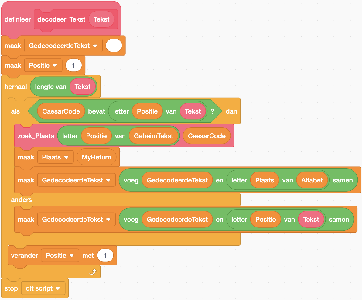 De procedure decodeer_Tekst kan als volgt in Scratch worden geprogrammeerd: